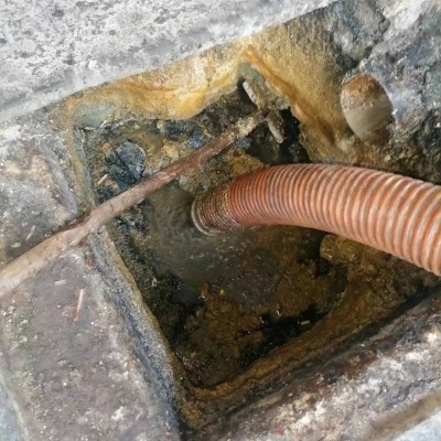 4、利用工具挖去隔油池表面凝固油垢,或启动吸污车吸出油池内污水到化油结块物吸完为止